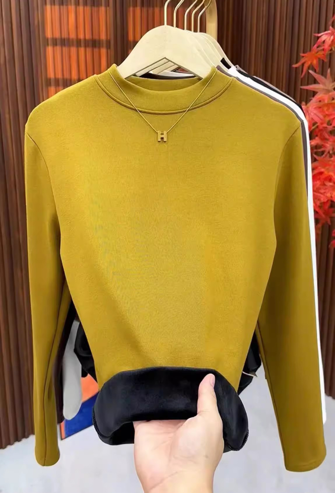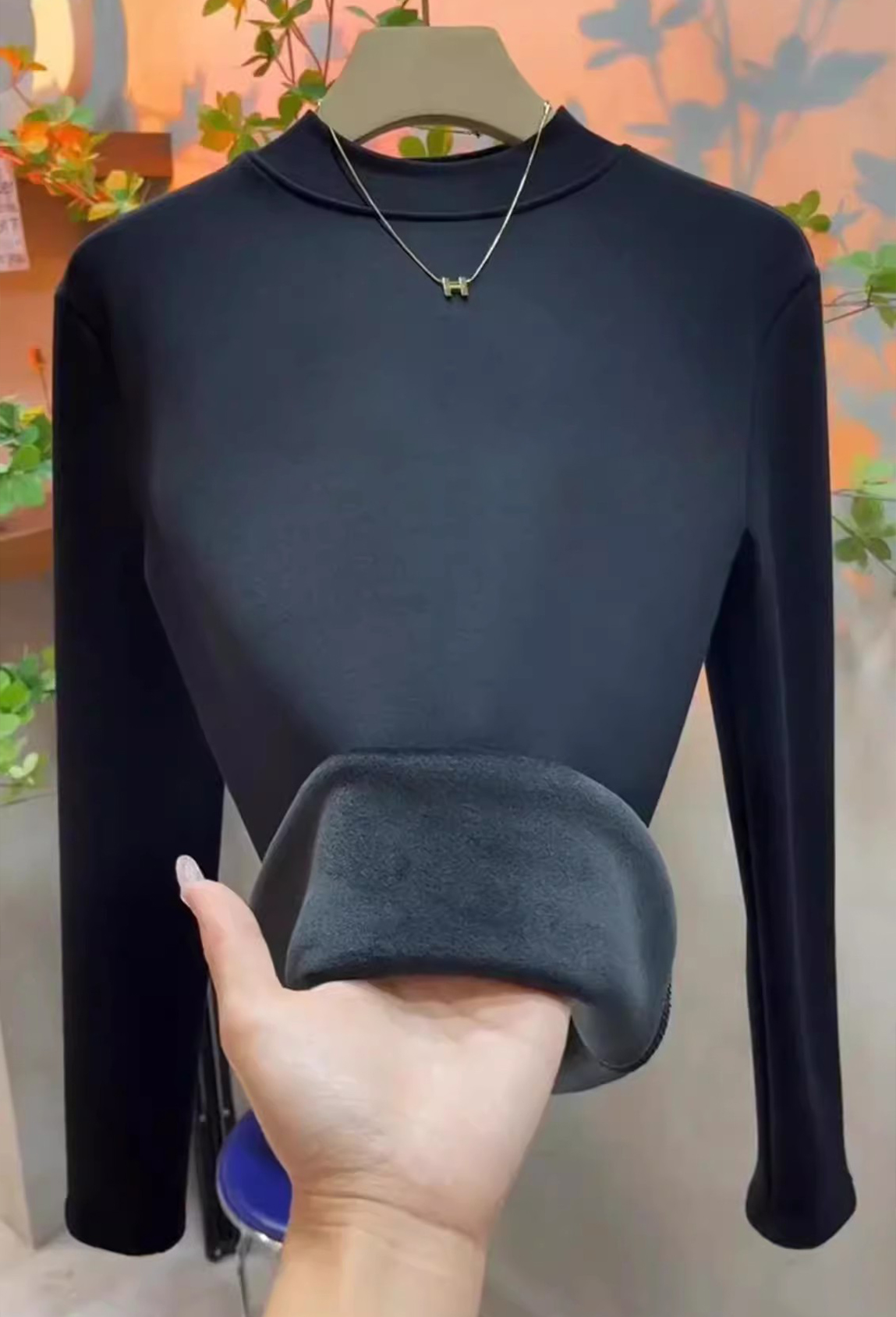 半高領加絨保暖修身打底衫