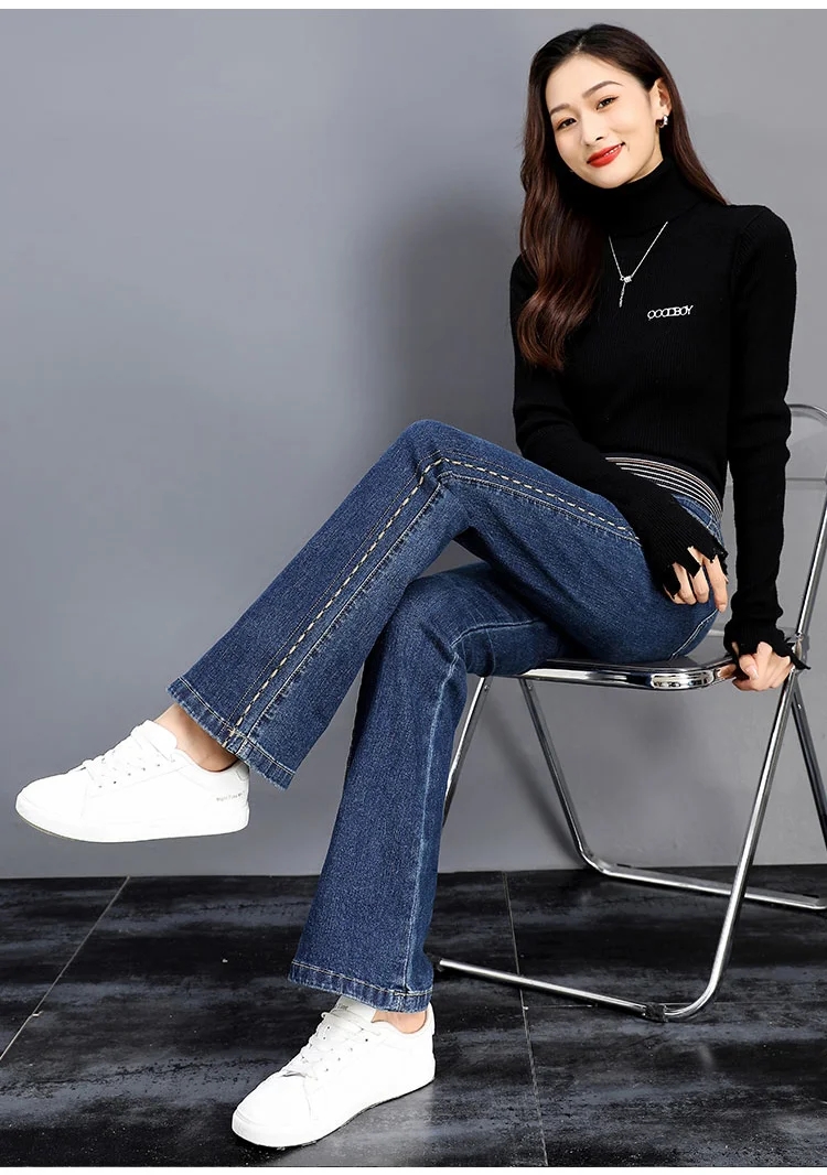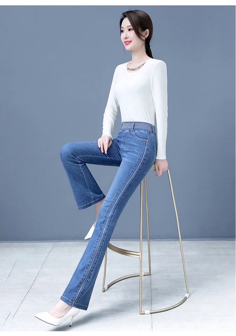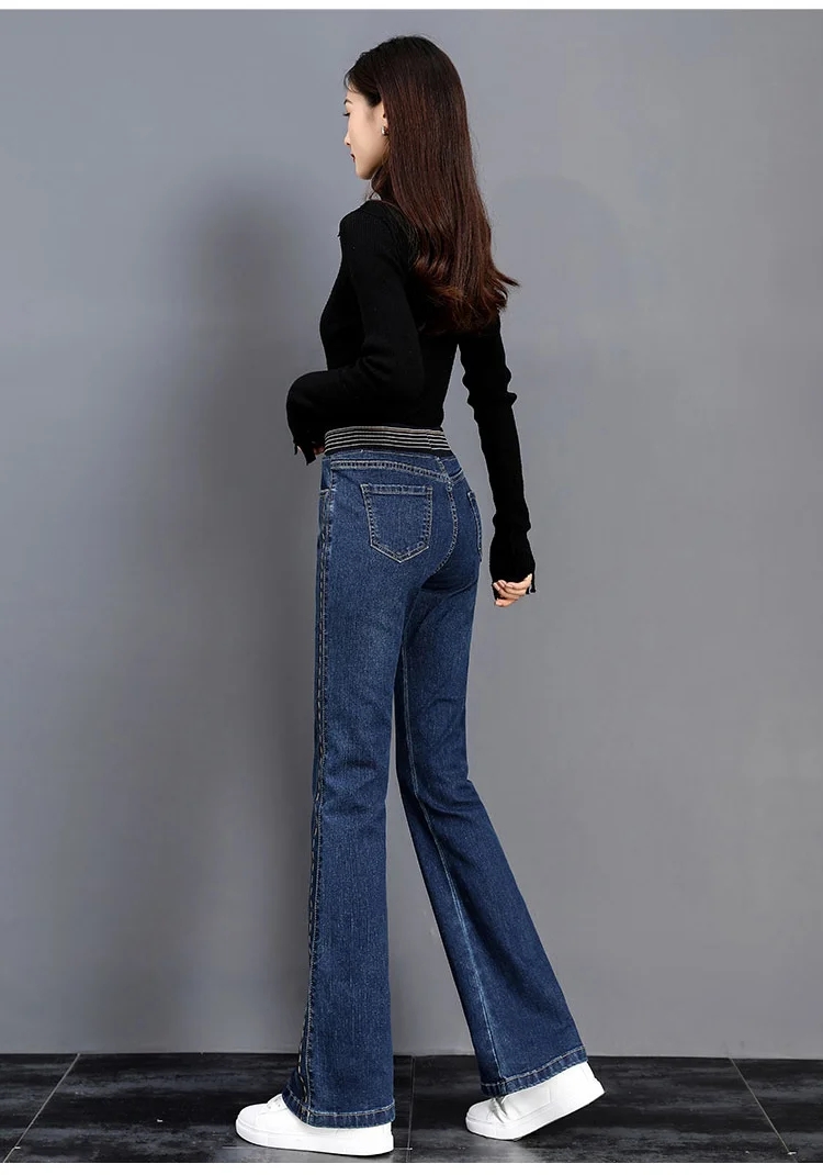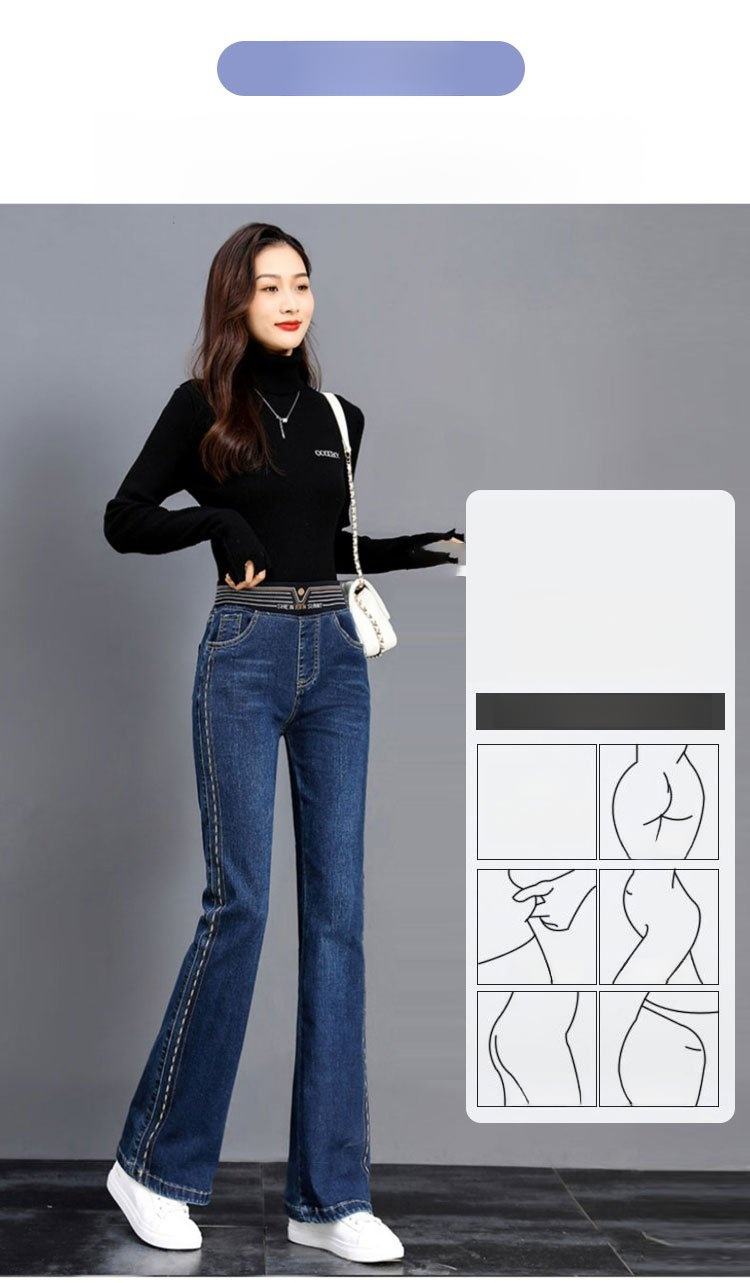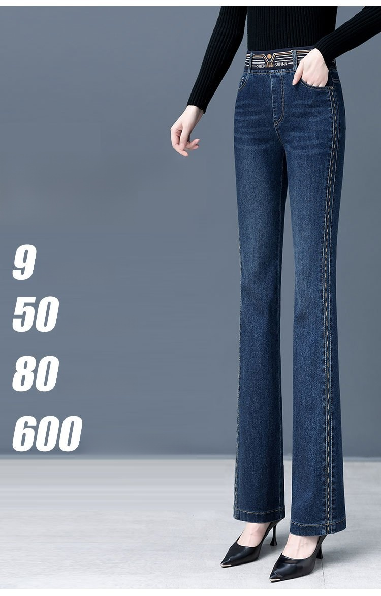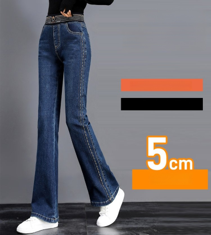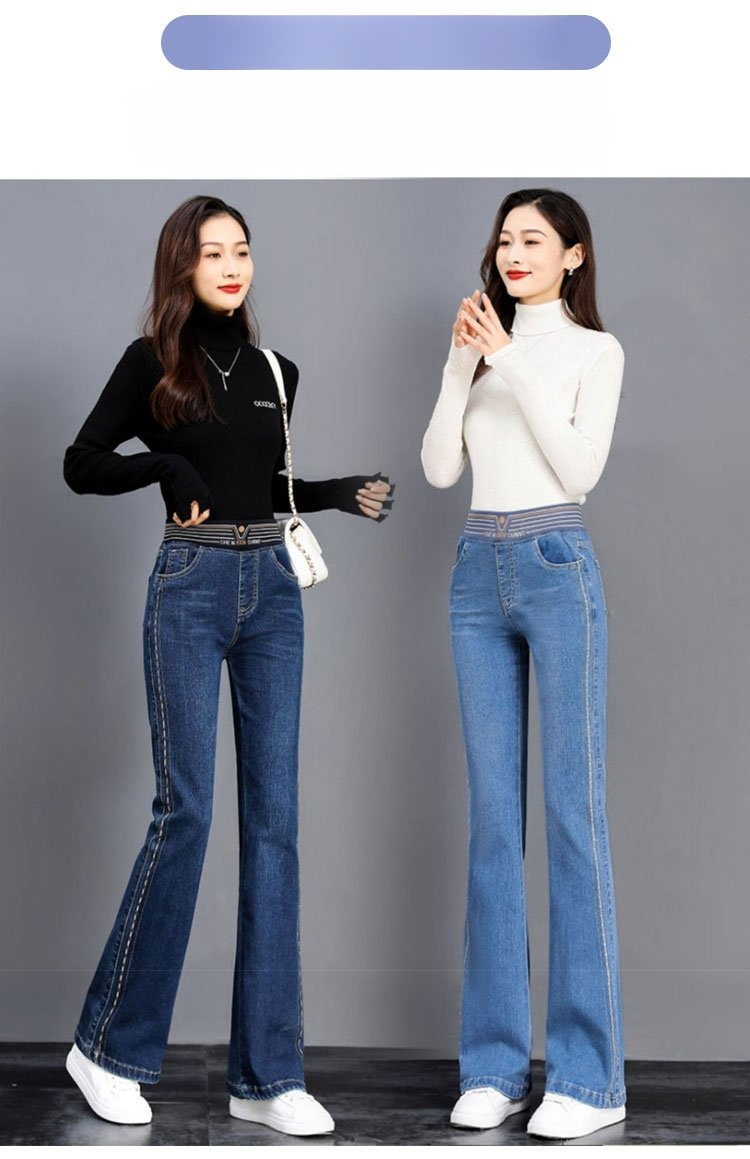 【新款】彈力微喇褲高腰牛仔褲