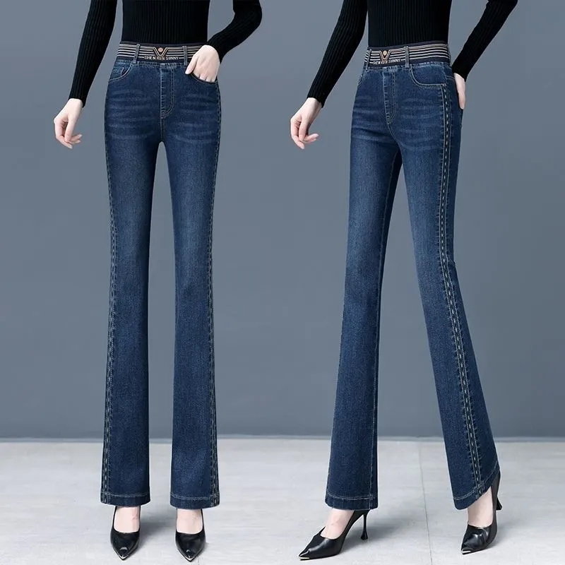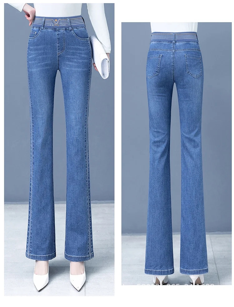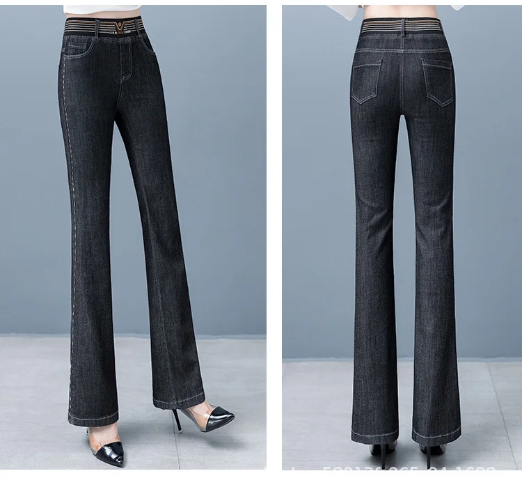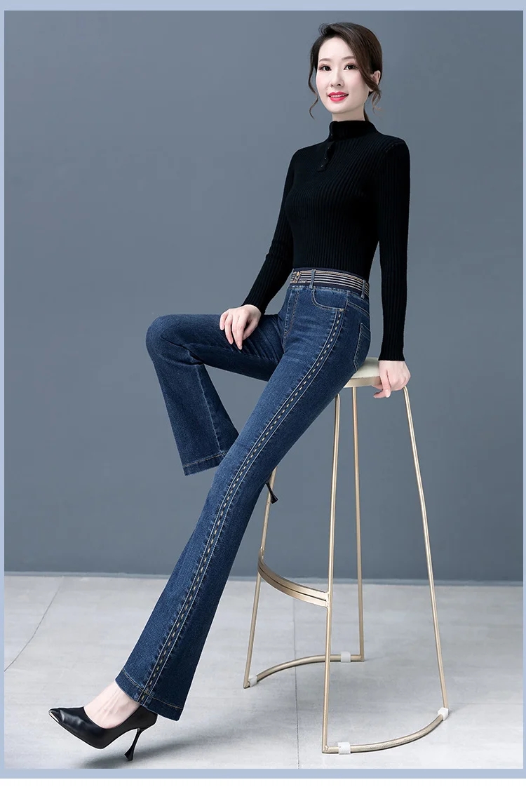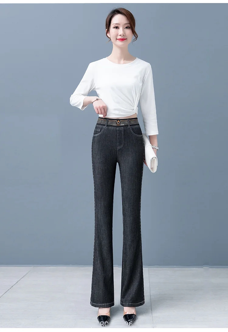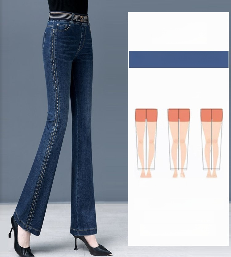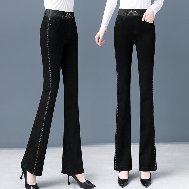 【新款】彈力微喇褲高腰牛仔褲