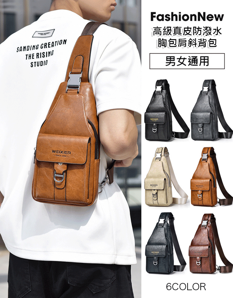 高級真皮防潑水胸包肩斜背包
