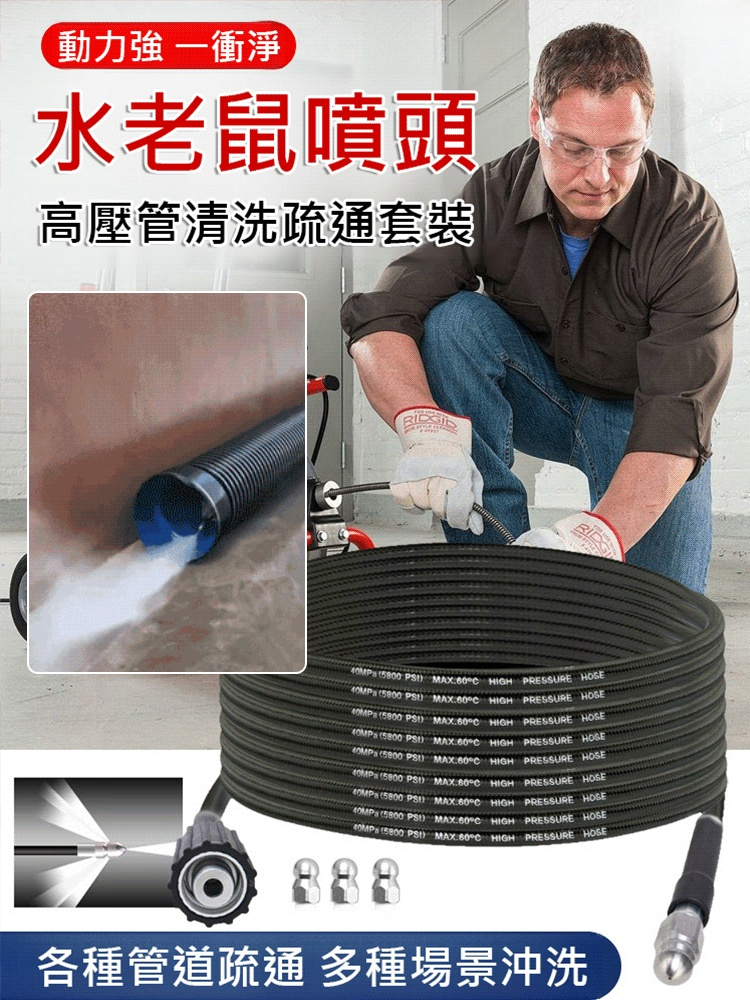 【一沖淨】水老鼠噴頭高壓管清洗疏通套裝