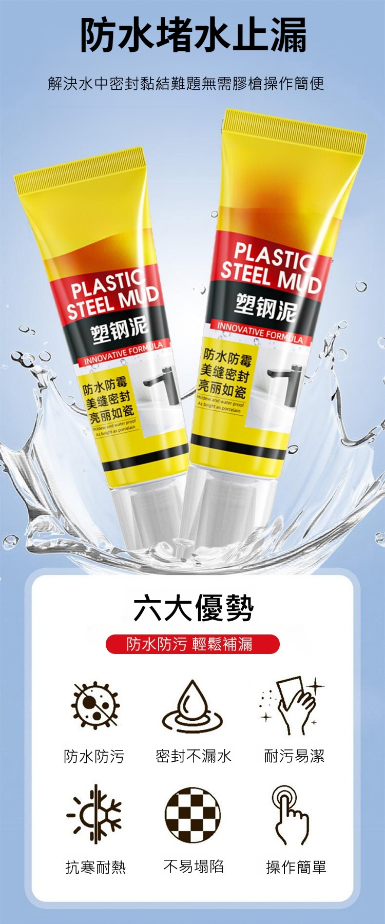 防黴防水白色塑鋼泥
